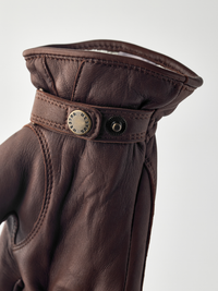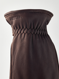 Zeitloser und wärmender Hirschlederhandschuh für Herren. Ein stilvolles Wintermodell mit fein gearbeiteten Details. Aus geschmeidigem, hochwertigem Hirschleder in rustikaler O...