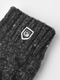 Weicher, bequemer Fäustling mit dekorativem Zopfmuster auf dem Handrücken. Gestrickt aus einem melierten Garn aus Merinowolle, das mit Alpaka und recyceltem Polyamid gemischt ...
