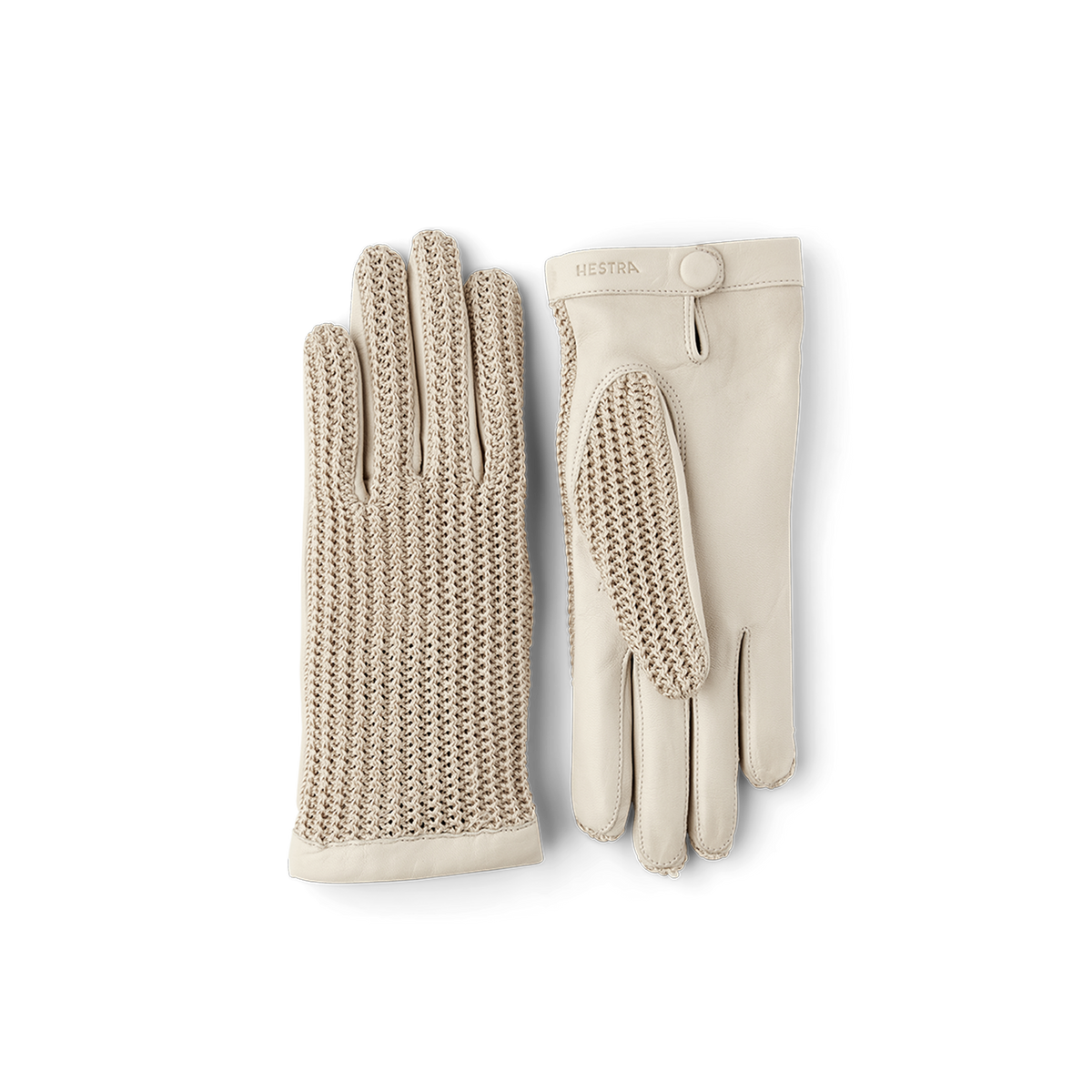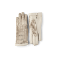 Klassischer Damenhandschuh aus feinstem italienischem Lammnappa mit gehäkelter Oberhand. Ein ungefütterter Lieblingshandschuh, der Ihrem Outfit im Frühjahr, Sommer und Frühher...