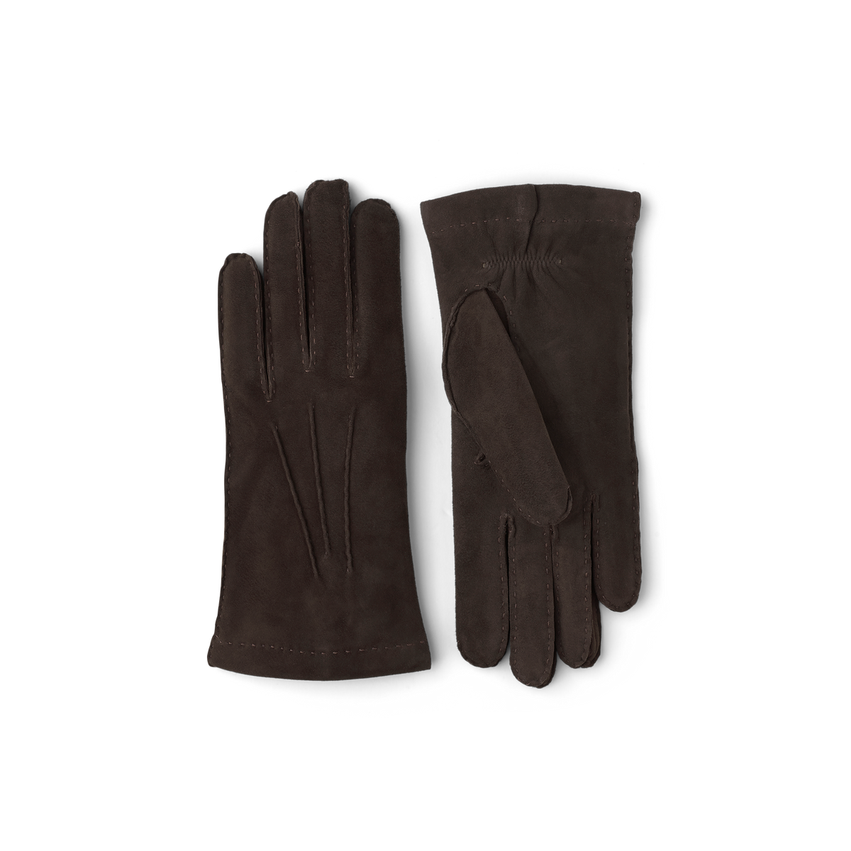 Klassischer Damenhandschuh aus exklusivem Lammveloursleder mit Kaschmirfutter. Das Modell wurde im Atelier von Hestra in Ungarn von Hand zugeschnitten und an den Pikee-Nähten ...