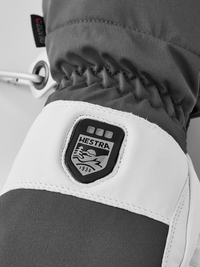 An kalten Wintertagen helfen Heizelemente an den Fingerspitzen, die Hände warm zu halten*. Die dreistufige Heizung lässt sich im Hestra-Logo auf der Oberseite schnell und einfach einstellen. Dazu gehören austausch- und aufladbare Akkus sowie ein Ladegerät und Handschlaufen, die verhindern, dass man den Handschuh verliert. Klettverschluss innen am Handgelenk und Akkutasche in der Stulpe.
