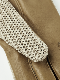 Zeitloser ungefütterter Damenhandschuh aus geschmeidigem Lammnappa mit gehäkeltem Handrücken. Ein elegantes Modeaccessoire, das Ihrem Outfit im Frühjahr, Sommer und Frühherbst...