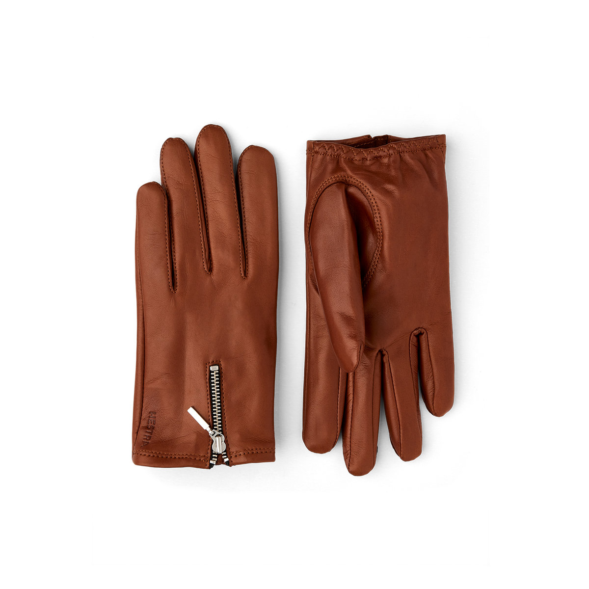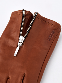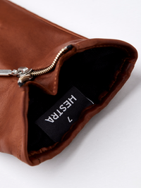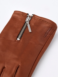 Kurzer, stilvoller Damenhandschuh aus Leder mit dekorativem Reißverschluss aus Metall am Handrücken. Aus geschmeidigem italienischem Lammnappa mit eng anliegender Passform. Ei...